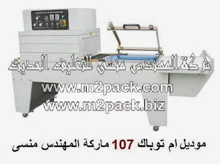 مواصفات ماكينة تغليف شرنك حرارية مع قطاعة تيوب الشيرنك موديل ام تو باك 107 ماركة المهندس منسي